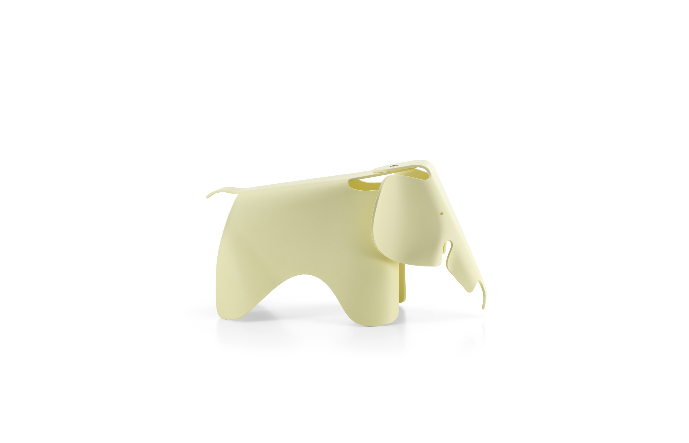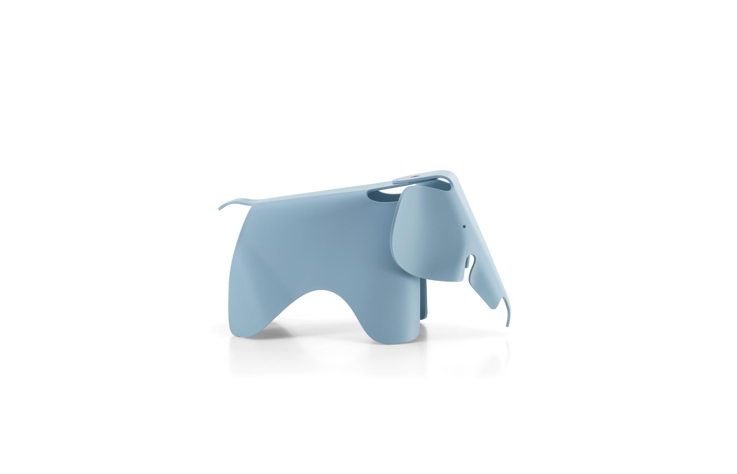 Charles and Ray Eames developed a toy elephant made of plywood in 1945. A scaled-down version, the Eames Elephant (small) made of robust recycled plastic, can be used as a child’s toy or as a decorative object, whose friendly face adds a charming note to any setting.