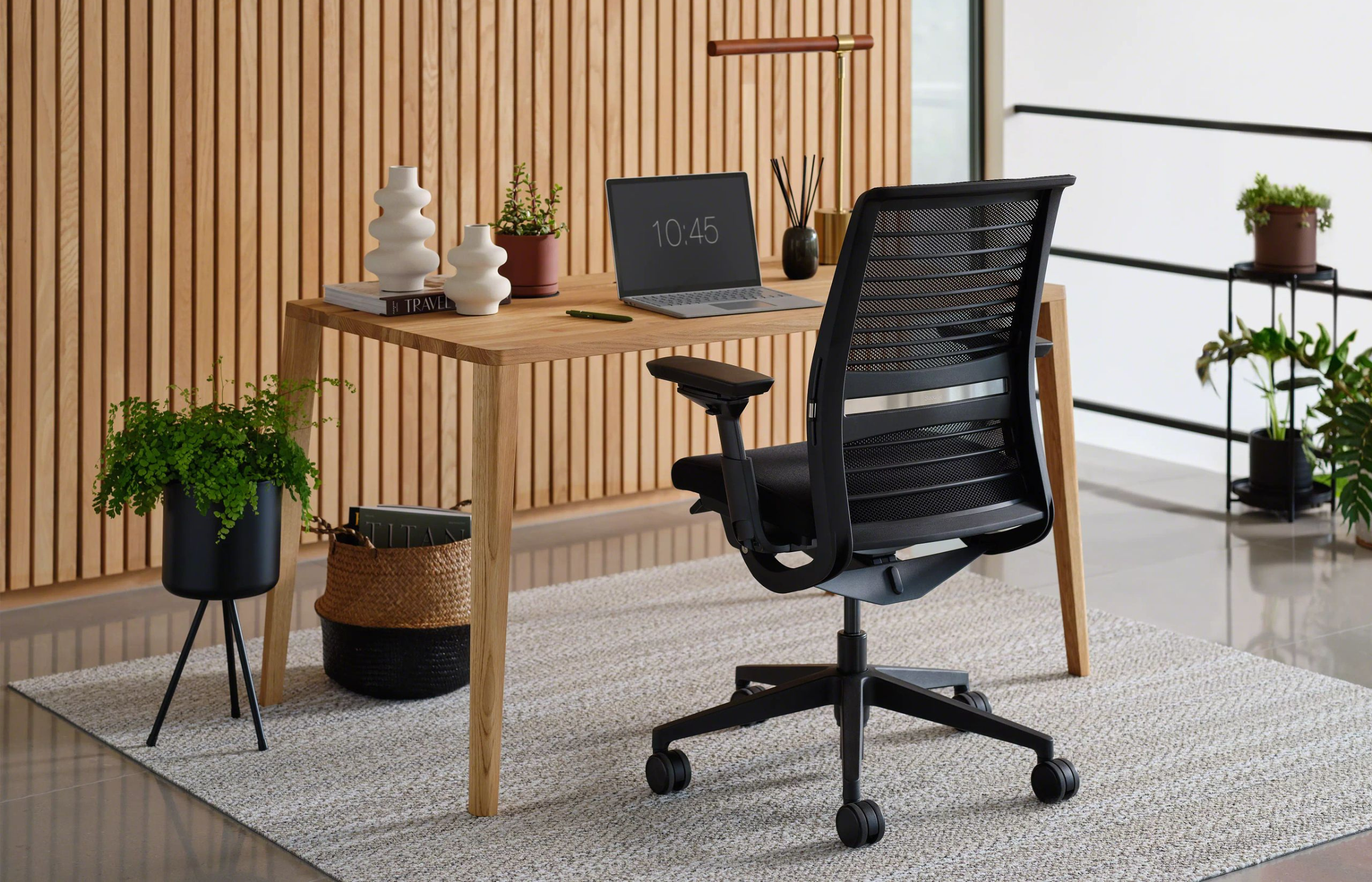 The Think chair is an ergonomic office chair that senses what your body needs. The Integrated LiveBack™ System conforms to your body and moves with you as you change postures. It features an advanced weight-activated seat, so anybody can get comfortable, quickly. Highly recyclable and easy to disassemble, this thoughtful design is good for you and the environment.